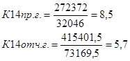 (К14) вычисляется путем деления оборотных активов организации на среднемесячную выручку и характеризует объем оборотных активов, выраженный в среднемесячных доходах организации, а также их оборачиваемость: