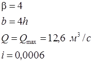h=1,37 м b=4h=5,48 м ω=5,5h2=10,32 м2.