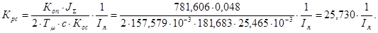 Коэффициент обратной связи по току якоря:
