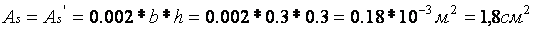 Требуемую площадь поперечного сечения арматуры определяем, исходя из минимального процента армирования,
