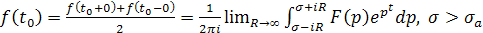 При некоторых дополнительных условиях оригинал f(t) однозначно восстанавливается по своему F(p). Например, если f(t) имеет ограниченную вариацию в окрестности точки t0 или если f(t) кусочногладкая, то имеет место формула обращения преобразования Лапласа: