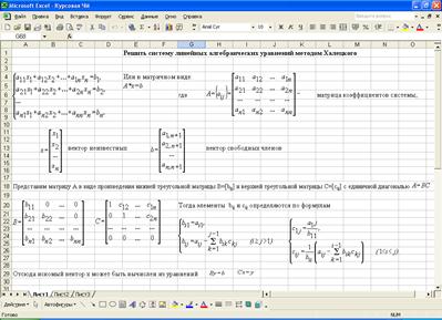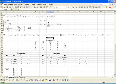 Схема Халецкого удобна для работы на вычислительных машинах, так как при представлении матрицы А в виде произведения нижней треугольной матрицы L и верхней треугольной матрицы U с единичной диагональю, операцию “накопления” можно проводить без записи промежуточных результатов.