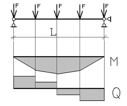 Методами строительной механики вычисляются Mmax и Qmax для главной балки и усилия