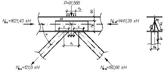 Для этого узлы вычерчивают в масштабе и устанавливают размеры наклонных планок, ребер и если требуется фасонок усиления узлов. Планки принимаем толщиной 10 мм. Сварные швы, прикрепляющие раскосы к поясам, рассчитываются как стыковые и проверяются на прочность: по нормальным напряжениям, на сдвиг.