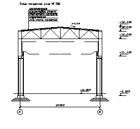 Высота трапецеидальной стропильной фермы на опоре h0 принимается 2200 мм при всех пролетах. Уклон кровли i = 1:12