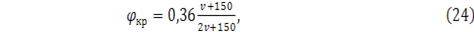 В четырнадцатом столбце записывают значения расчётного коэффициента трения колодки φкр, которые рассчитывают для значений скорости приведенных в первом столбце по следующей формуле (для композиционных колодок)
