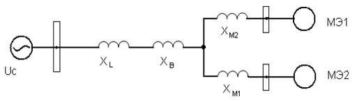 Хс=Sб/(1,73*Iпо.вн*Uвн)= 63·106/(1,73*1655,28*330000)= 0,067 о. е.