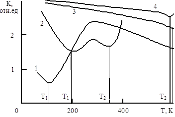 Установлено, что температурная зависимость коэффициента конденсации атомов металла на поверхности полимеров носит сложный характер (рис. 2) [10].