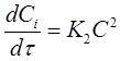К2 - константа скорости реакции 2го порядка. С другой стороны скорость реакции можно представить через изменения концентрации исходных веществ во времени:
