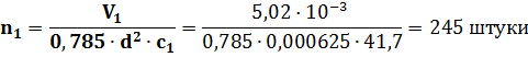 G2 – расход бензина м3/час, dвн – внутренний диаметр трубок, м