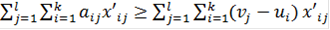 (транспортные расходы минимальны). Выполняются ли условия потенциальности для плана Х' - неизвестно, но каждой клетке (i, j) макета 8, исходя из потенциальности плана Х, соответствует неравенство vj - ui £ aij или, наоборот, aij ≥ vj - ui. Возьмем из каждой клетки макета соответствующий х'ij, умножим его на левую и правую части последнего неравенства и сложим. Получим неравенство <