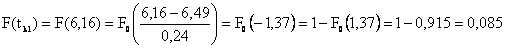 Для построения дифференциальной кривой f(t) определяется теоретическая вероятность попадания случайной величины в каждом интервале статистического ряда (таблица 1.2).