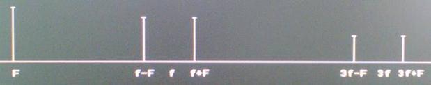 Зная спектральный состав тока на выходе модулятора, а так же уровень модулирующего колебания P(F)= -3 дБ, находим рабочее затухание модулятора.