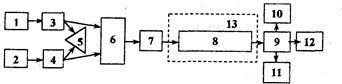 1,2 - сосуды с элюентами; 3, 4 - насосы; 5 контроллер; 6 - смесительная камера; 7 - инжектор; 8 - колонка; 9 - детектор; 10 - регистратор; 11 - блок автоматической обработки результатов анализа; 12 — коллектор фракций; 13- термостат