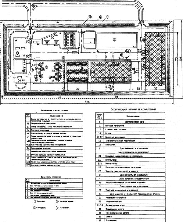 Выделение при компостировании дифференцированных температурных зон и интенсивное управление процессом в каждой из этих зон стало основой для конструктивно-технологического и функционально-компоновочного оформления сооружений по биодеструкции нефтепродуктов в нефтесодержащих шламах. На рис. 4 представлен комплекс по биодеструкции нефтешламовых отходов, разработанный авторами и успешно внедренный на одном из предприятий Самарской области.