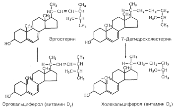 Витамин D. Известно несколько витаминов группы D (D2, D3, D4, D5, D6, D7), имеющих сходное строение. Наибольшей биологической активностью обладают витамины D2 (эргокальциферол) и D3 (холекальциферол). Витамины группы D содержатся главным образом в организме человека и животных.
