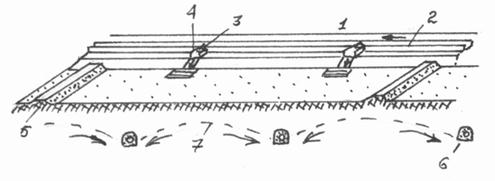 Поля фильтрации и поля орошения представляют собой земельные участки, на которых сточная вода подводится, равномерно распределяется, фильтруется через слой почвы и в процессе фильтрации подвергается биологической очистке (рис.).