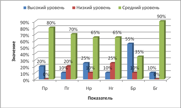 1. По всем видам событий, кроме будущих радостных событий, преобладает средний уровень эмоциональных переживаний (от 65 до 90%).