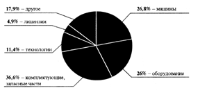 По импорту соотношение складывается опять-таки в пользу комплектующих, запасных частей (38,9%), а по импорту технологий показатель остается таким же -11,4%.