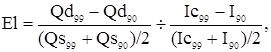 где Qd99, Qd90 – объем спроса на товар при неизменной цене. За основу возьмем равновесную цену на товар в 1990г.