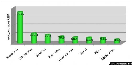 Основной объем внешнеторгового оборота Алтайского края в силу исторически сложившихся кооперативных связей приходится на долю стран СНГ – более 60%. Вместе с тем, наблюдается активизация торговли с некоторыми странами Азиатско-Тихоокеанского региона.
