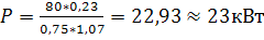 Номинальная мощность электродвигателя АШЛ определяют по формуле: