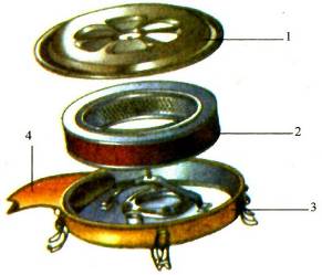 1 - крышка; 2 - фильтрующий элемент; 3 - корпус; 4 – воздухозаборник