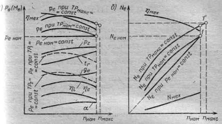 Внешняя номинальная характеристика — кривая TРном=const (рис. 12) — характеристика, соответствуящая работе двигателя в условиях изменяющихся нагрузки и частоты вращения при активном ходе плунжера ha H0M или соответствующем ему положении топливной рейки ТРН0М, обеспечивающем номинальные значения мощности и среднего эффективного давления при номинальном скоростном режиме nном