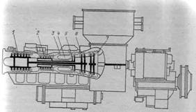 Рис. 4. ГТУ М-25 со схематическим разрезом ГТД