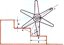 Величину угла можно задавать с учетом устойчивости хода шагающего колеса, передвигающегося по лестнице. Этот угол, согласно указанному ограничению, может быть задан меньше чем 90º от линии наклона лестницы (то же самое от хорды S). Число спиц определяется исходя из условия: