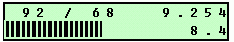 4. Остальное пространство нижней строки занято логарифмической шкалой мгновенного расхода топлива. Шкала содержит 28 позиций отражающих графически мгновенный расход топлива в литрах/час.
