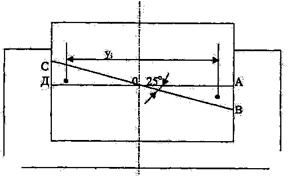б) Рассмотрим второй случай, когда предусматривается частичное заполнение трюмов. В случае частичной загрузки трюмов (Рисунок 4.10) условный расчётный угол смещения поверхности зерна принимается равным 250.