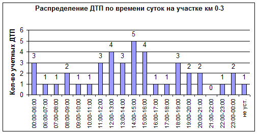 Учетные ДТП на рассматриваемом участке происходят чаще всего зимой в дневное время (см. Диаграммы 2 и 3);