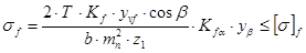 где Kfβ - коэффициент, учитывающий неравномерность распределения нагрузки по длине зуба [(Kfβ =1,14) 7, табл312];