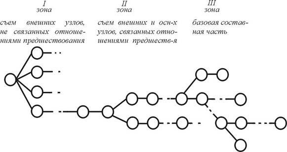I зона – съем внешних узлов, не связанных отношениями предшествования – имеет интенсивные ветвления.