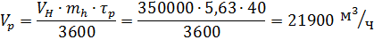 Уточним объем газа, расходуемого на обратную продувку в течении 1 ч: