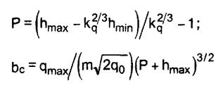 где Р – перепад уровней воды между дном песколовки и порогом водослива; hmax, hmin – уровень воды, м при максимальном qmax и минимальном qmin - расходах и и = 0,3 м/с; kq = qmBJqmm\ bc – ширина водослива, м; m = 0,35–0,38 – коэффициент расхода водослива.