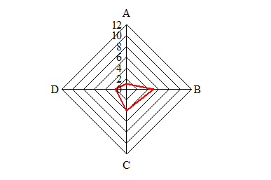 Из профиля на рисунке 2 мы видим, что во второй организации преобладает рыночная культура – 6 баллов (43%); 4 балла (29%) – иерархическая культура и по 2 балла (14%) – клановая и адхократическая. В данной организации преобладает ценности, ориентированные на результат.