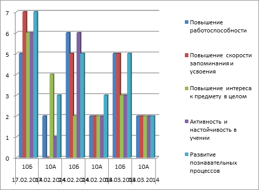 Таблица 2 Результаты наблюдений в 10А и в 10Б классах.
