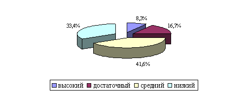 Как видно из рисунков 2.8 и 2.9, 75% учащихся контрольной группы имеют средний уровень сформированности читательской деятельности, 25% - низкий уровень. В экспериментальной группе эти показатели значительно выше. Низкий уровень у учащихся экспериментальной группы не зафиксирован. Средний уровень наблюдается у 58,3% детей, 41,7% имеют высокий уровень сформированности читательской деятельности.