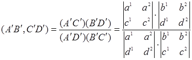 – Каким отношением связанно сложное отношение четырех точек прямой и отношение трех точек прямой?