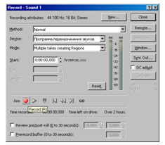 Для этого устанавливался требуемый уровень записи с микрофона, затем при нажатии на кнопку Record, начиналась запись, наговаривался текст, и по окончании нажималась кнопка Stop.
