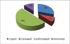 Из рисунка 3 видно, что из опрошенных респондентов на первом месте работающие они составляют 50%;