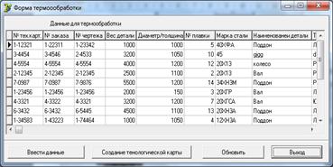 Рисунок 2.12 – Форма для отображения данных для технологических карт на термообработку
