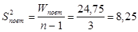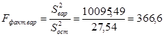 Если сравнить дисперсию вариантов с остаточной, мы видим что Sвар>Sост, тогда будем рассчитывать значение критерия.