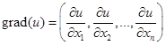Пусть u=u(x1,x2,…,xn) – функция, определенная в любой точке действительных чисел. Градиентом u является N - вектор-функция, обозначаемая grad u и определенная следующим образом:
