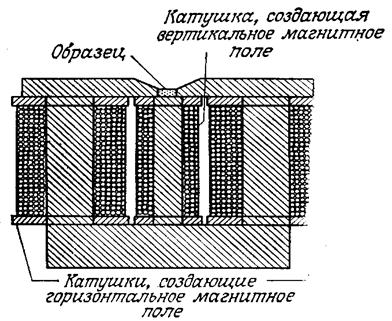 На отполированных образцах можно наблюдать изображения доменов. Для наблюдений можно использовать отражательный металлографический микроскоп с увеличением 70¸150×. Для таких исследований очень хорошо иметь небольшой магнит типа показанного на рисунке 39. С его помощью можно создавать любое необходимое поле. Впрочем, для наблюдений изображений доменов достаточно и простого постоянного магнита, расположенного под предметным столиком.