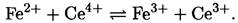 в) Определяемое вещество и титрант образуют обратимые окислительно-восстановительные пары: титрование ионов Fe(II) ионами Ce(IV) (рис. 3.3, в):