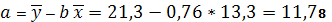 Уравнение линейной регрессии имеет вид: у=11,78+0,76х