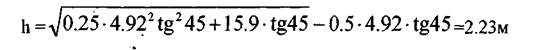 где В - ширина руслоотвода по низу, В=4,92м т.е. ширине отвала бульдозера Д-521А плюс зазоры по 0.5м с каждой стороны Р - угол откоса стенок канавы, (3=45°